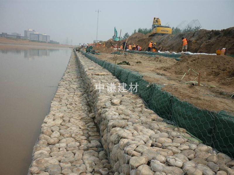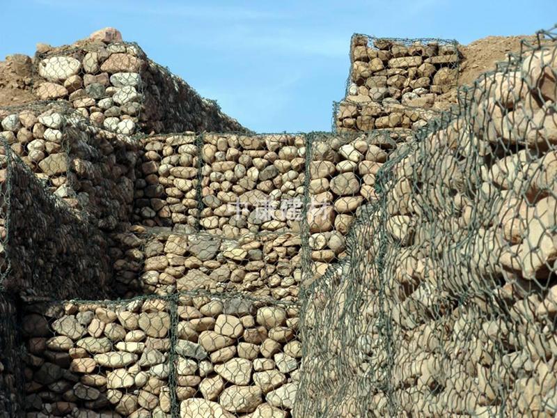 (3)鍍鋅鋼絲包塑:優質低碳鋼絲,在鋼絲的表面包一層PVC或PE保護層,再編織成各種規格的石籠網。這層保護層將會大大增加在高污染環境中的保護,并且通過不同顏色的選擇,使其能和周圍環境融合。